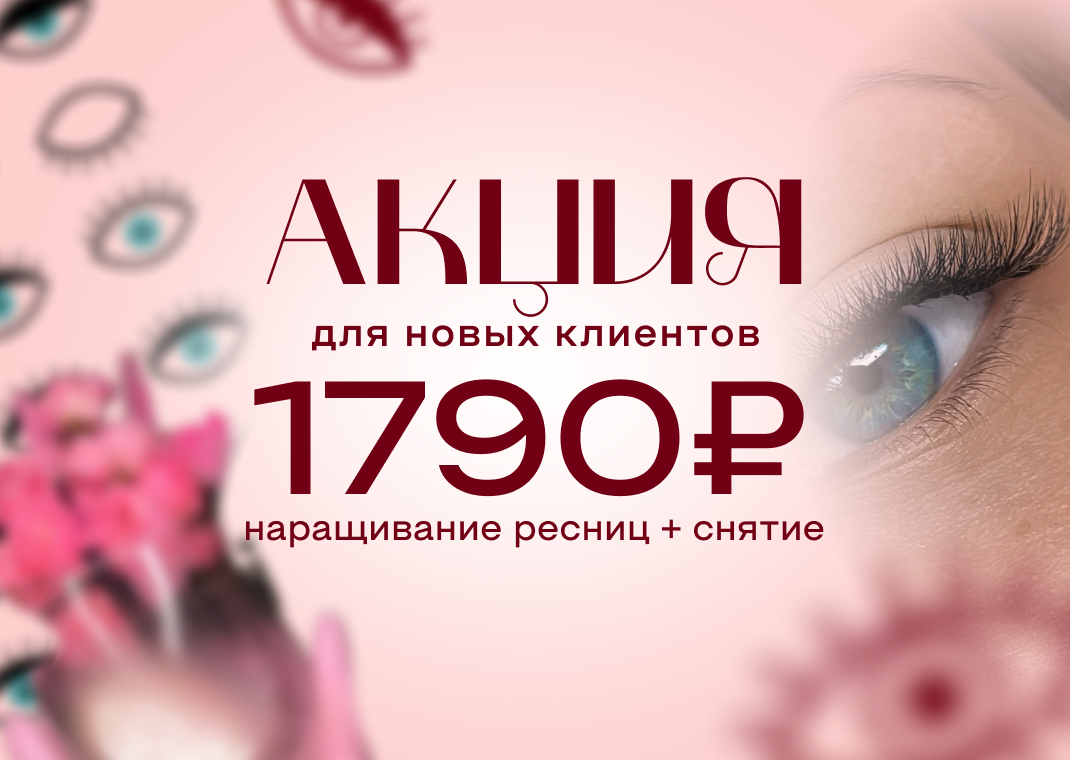 и запишитесь на наращивание ресниц + снятие за 1790 рублей вместо 2100 рублей
